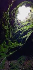 Santa Bárbara’sta 16 km päässä sijaitsee Algar do Carvão’n sammunut tulivuori, jonka pohjalle laskeuduimme 100 metrin syvyyteen. Muiden turistien perässä mentiin lukemattomia (kuulemma 338) portaita alas, ylös noustessa askelmien määrä tuntui tuplaantuneen! Minulle tulivuoren pohjalla käynti oli matkamme vaikuttavin kokemus. Kuvittelin millainen määrä kiehuvaa laavaa on sen sisuksista purkautunut ulos. Seisoessani ihailemassa pohjalle  muodostuneen pienen järven kaunista sineä ja ihmetellässäni seinämän eri värisiä kuvioita ja tippukiviä, ja kietoessani sadetakkia tiukemmin ympärilleni välttääkseni seinämästä tihkuvat vesipisarat, katson ylös kohti vihreäksi seinäksi muuttunutta kraaterin aukkoa, ja silloin tunnen itseni niin pieneksi, niin pieneksi…