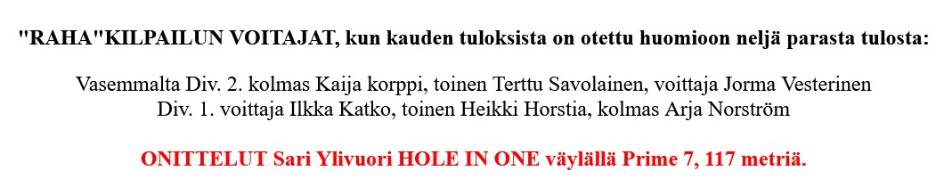 Pelasimme 2 eri sarjaa : DIVISIOONA 1. WHS 19,9 ja alle  SEKÄ DIVISIOONA 2, WHS 20,0 ja yli.