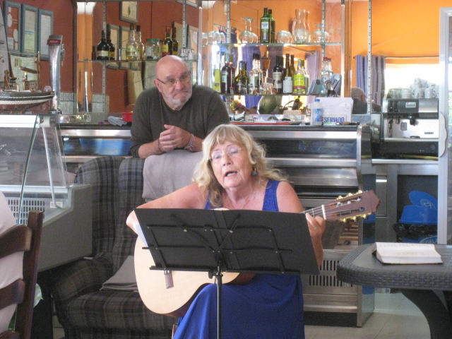 Lounaan lomassa saimme kuunnella Annele Tannisen esittämää suomalaista musiikkia, kiitos Annele. Taustalla kuuntelee paikan omistaja.